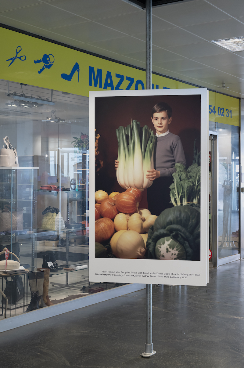 In the end, the most intriguing artworks of ‘Hybrid Futures’ are those that resist this tendency by making judicious interventions in the public space of Esch-sur-Alzette. Installed on steel rods that punctuate the commercial store fronts of the Centre Mercure, Bruce Eesly’s photo series ‘New Farmer’ leverages Artificial Intelligence to create a fake documentary of a GMO project, which allowed farmers to produce unseemly, humungous vegetables. The farther the photo series progresses, the more steeply we descend into uncanny valley. In one of the most memorable portraits, a weirdly cherubic boy holds his prized piece of fennel before a jury selection.