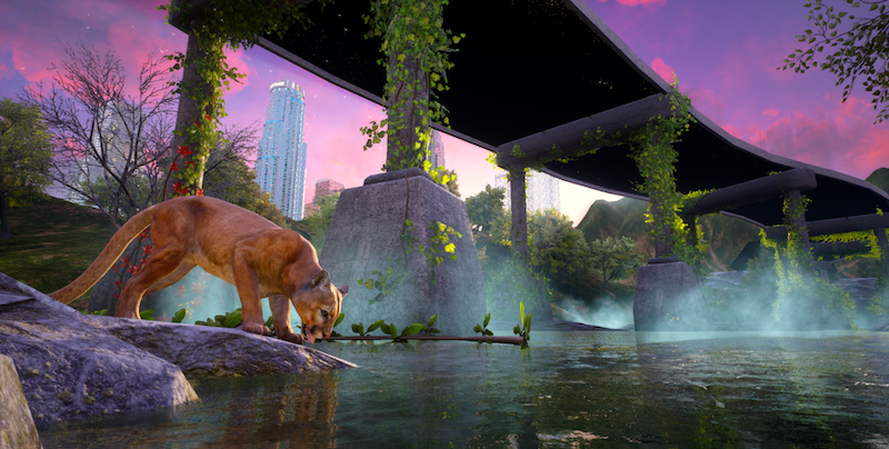 Immersed in Bucknell’s psychotropic landscape, one will be nonplussed if one looks for the hallmark missions of a role-playing video game. There are no scripted objectives, and the janky controller commands make it expressly hard to navigate the lush California scenery, with its twinkling insects and dry shrubbery. The risk of foregrounding this kind of plotlessness in art, even in the service of deconstructing the anthropocentric perspective, is that it can sound as though you’re pitching the sale of a house that lacks functioning utilities, and you’re no closer to harmony with the Earth for taking a shit in a toilet without plumbing.