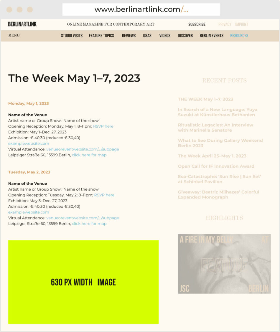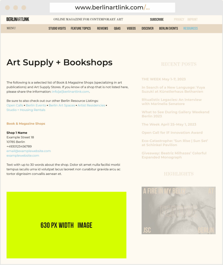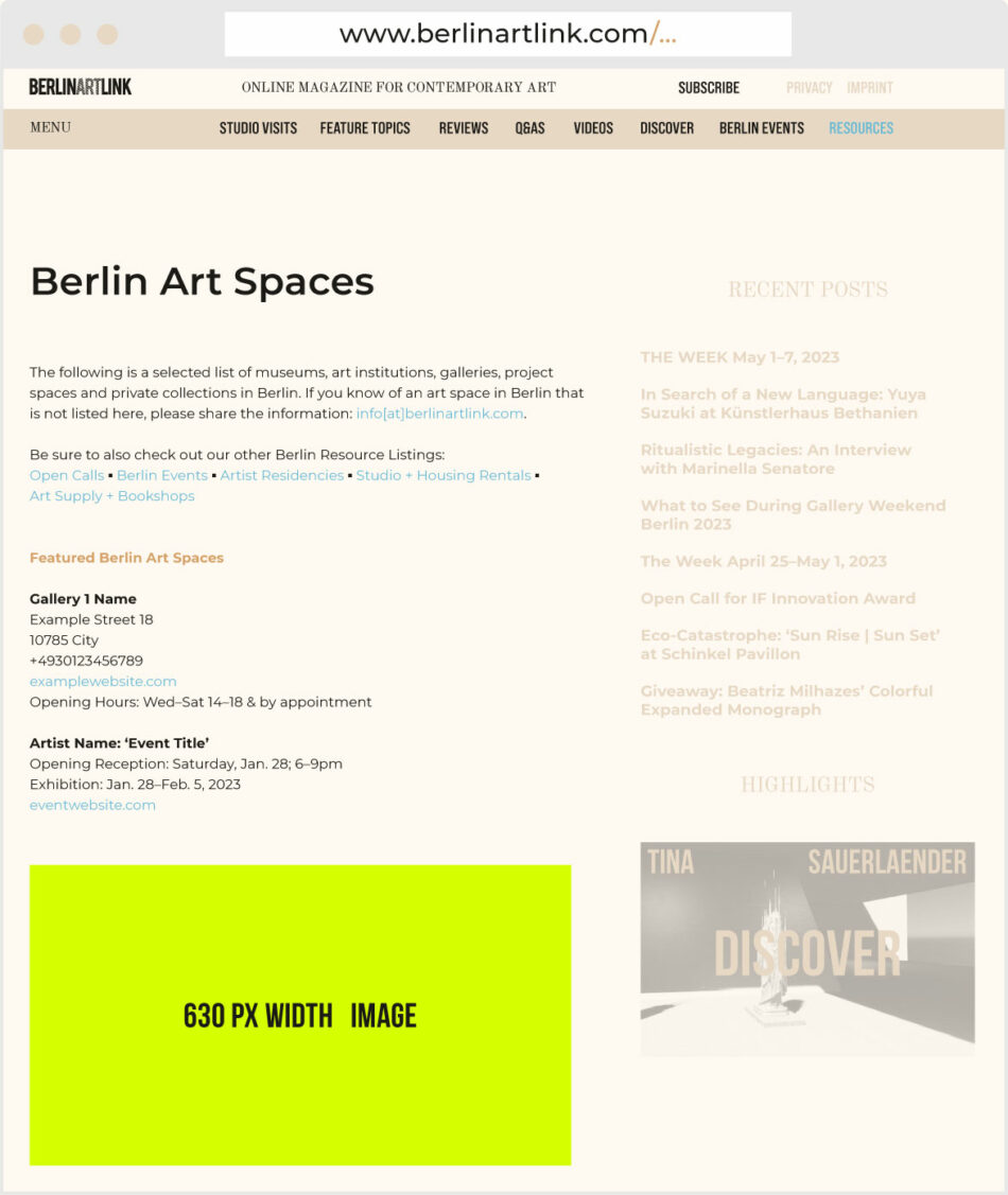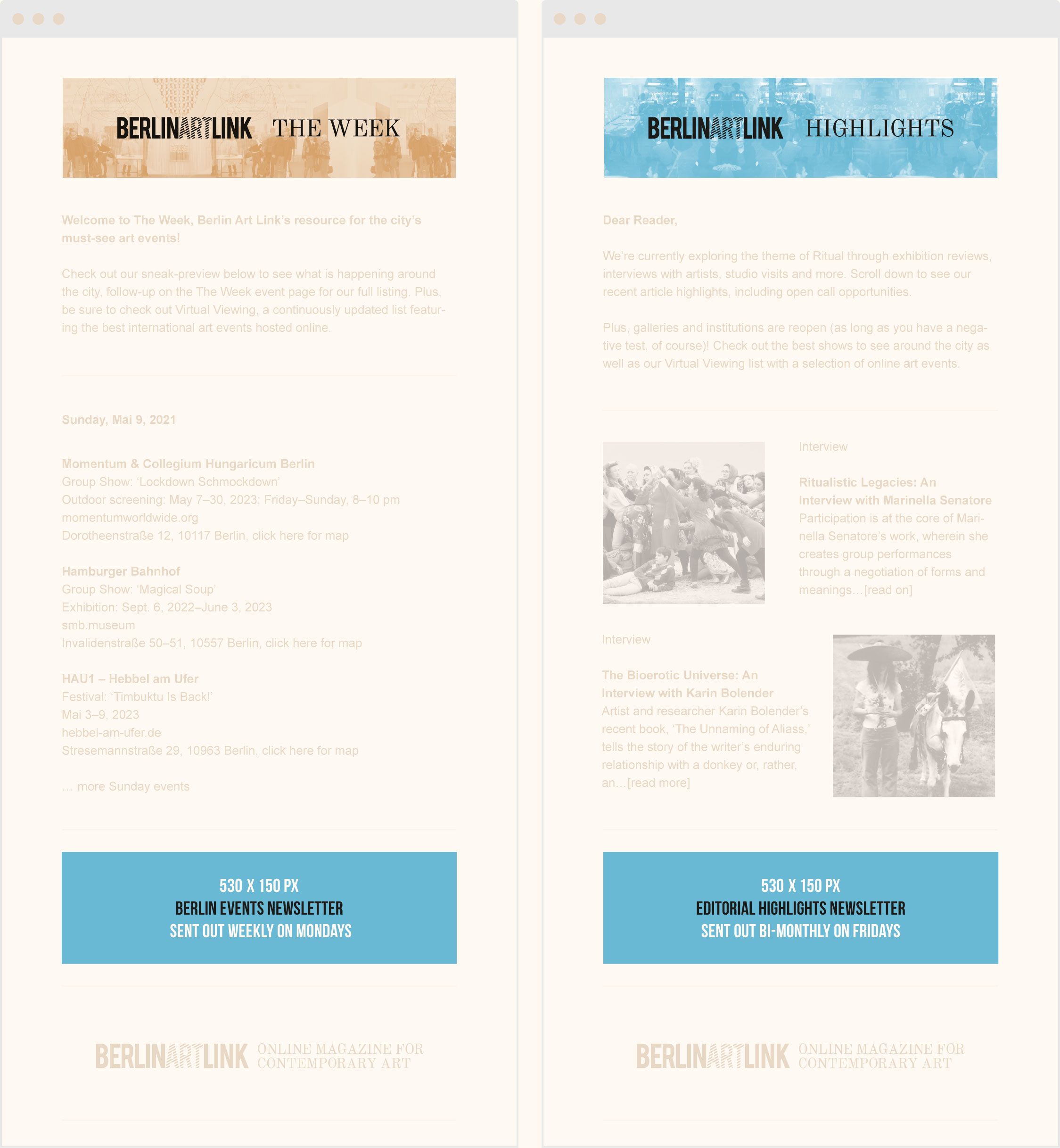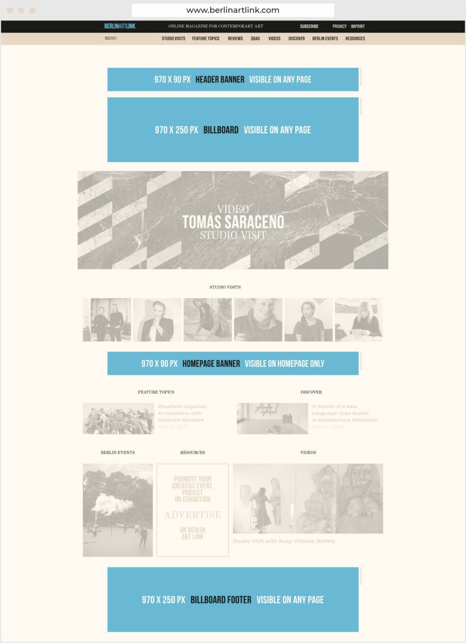 Want to promote your creative event, project or exhibition? Advertise on Berlin Art Link – Nominated for the German Design Award and LeadAwards – online magazine!