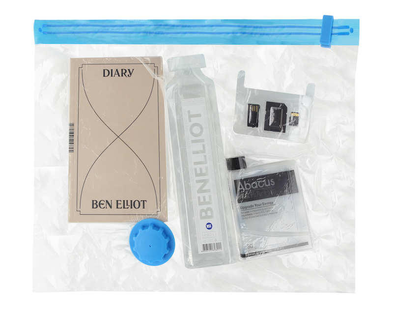 Ben Elliot: ‘Birthday Collection’, 2018. Campaign picture. Featuring Abacus Pills, Ben Elliot Water, Diary, The Stalker // Courtesy of the artist