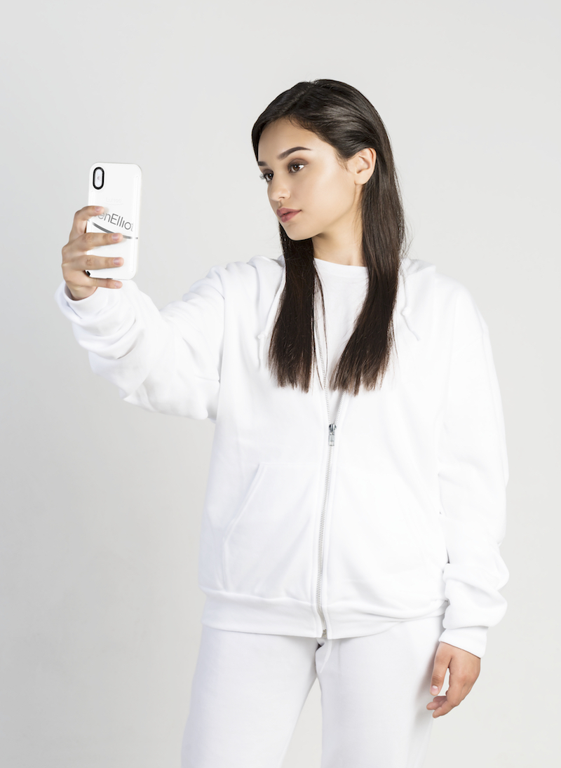 Ben Elliot: ‘Ben Elliot Shop – Energized by Red Bull’ (Saskia with American Apparel and LuMee), 2018, Campaign picture // Courtesy of the artist
