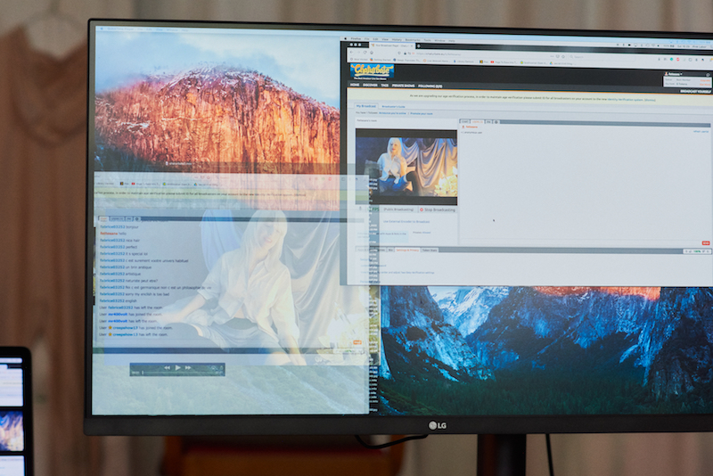 First, Sans shows us footage from ‘If I can’t sleep at night is it because I am awake in someone else’s room?’, wherein she lived and performed from a hotel room for five months. The room became her studio and her stage, as well as her retreat from those pressurised spaces. At the end of each month, as part of a “cycle system”, Sans offered a public performance, opening the space up by inviting people either to physically enter the room or via a digital stream. Taking action and reading from a script, Sans performed mundane repetitive gestures, “broadcasting nothing”: two characters can be seen browsing their phones, folding towels, looking out of the window. Streamed directly to YouTube, the security camera, webcam and iPhone footage was live-edited, combining videos playing from her laptop with screenshots of sexts coming through live, allowing Sans to construct the reality being fed to viewers.