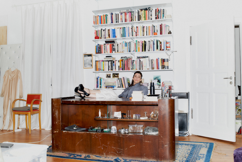 Fette Sans welcomes us into her Prenzlauer Berg studio on the first really hot day of the year. The glass-fronted, ground floor space, draped in sensual purple crocodile velvet, offers plenty of shade but little cool. Despite the light pouring in through the frosted glass, preventing people looking in from the street, the opulent textures, chaotic clutter and seedy glamour make the space feel darker, heavier and more loaded than it actually is. Dominating the room is a huge mahogany desk that Sans is trying to give away before she moves to Croatia part-time. She enquires if any of us might want it. Or perhaps something else catches our eye?