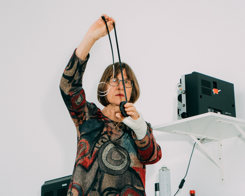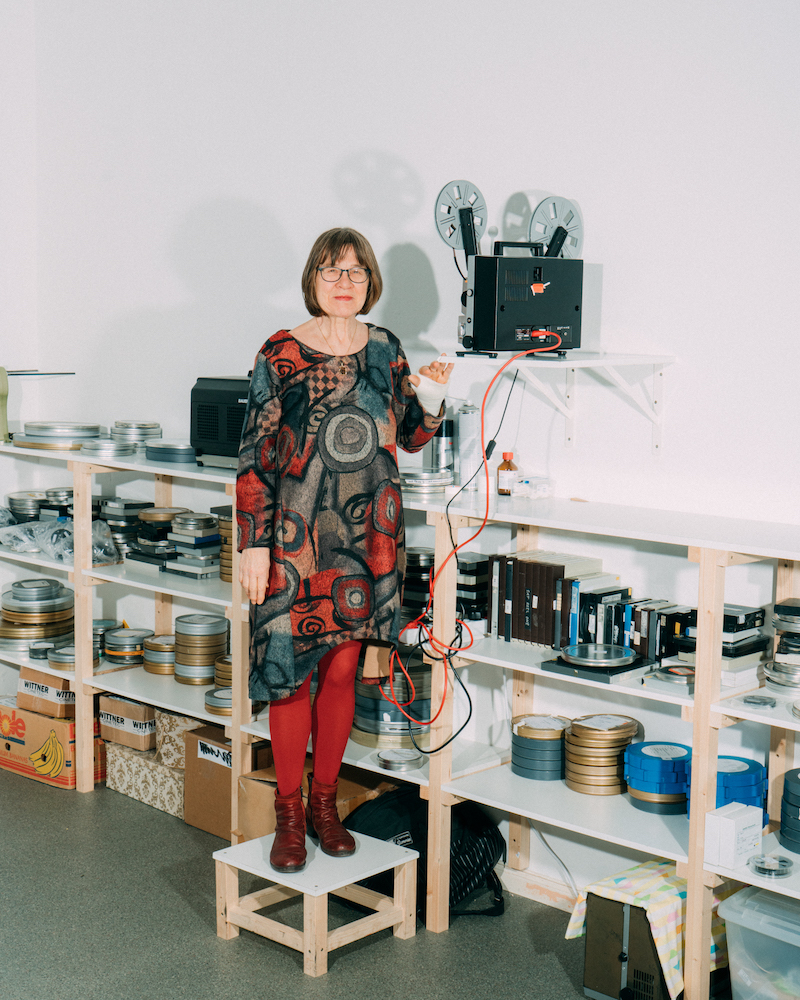 As a filmmaker who works in small-gauge formats, she also prefers to present her work on smaller scales, at times even making efforts to adapt spaces to better suit her work. At a 2018 screening and lecture at Berlin’s Kino Arsenal, Fanderl installed her Super8 projector in the centre of the room and chose to forego the main cinema screen in favour of a smaller, portable alternative.