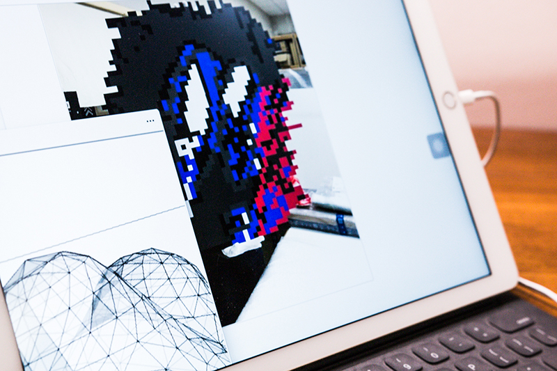 He acknowledges that the internet has created “new ways to talk about things” that are smart, but that are still relatively unknown. We are still learning how our infinite connectedness affects the ways we relate to ourselves and others. “I wanted to use the limits of the pixel to show the feelings of people.” aaajiao contructs the “icons” according to the timescale of the internet, arranging the pixels on his iPhone; “Each picture took me two to five minutes. It’s very much like tweeting something or putting something on Facebook.” The initial stage of the project, like a tweet or an Instagram post, can be done anywhere, though Berlin has a specific appeal for him.