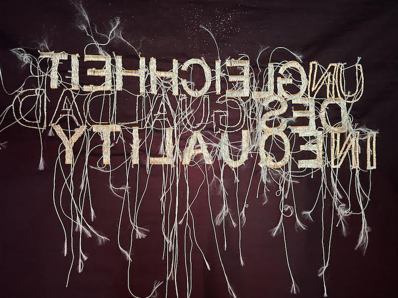 Carla Abilés: ‘(In) Equality,’ 2022, embroidery on black cotton fabric, 120x80cm // Courtesy of Dehlia Hannah