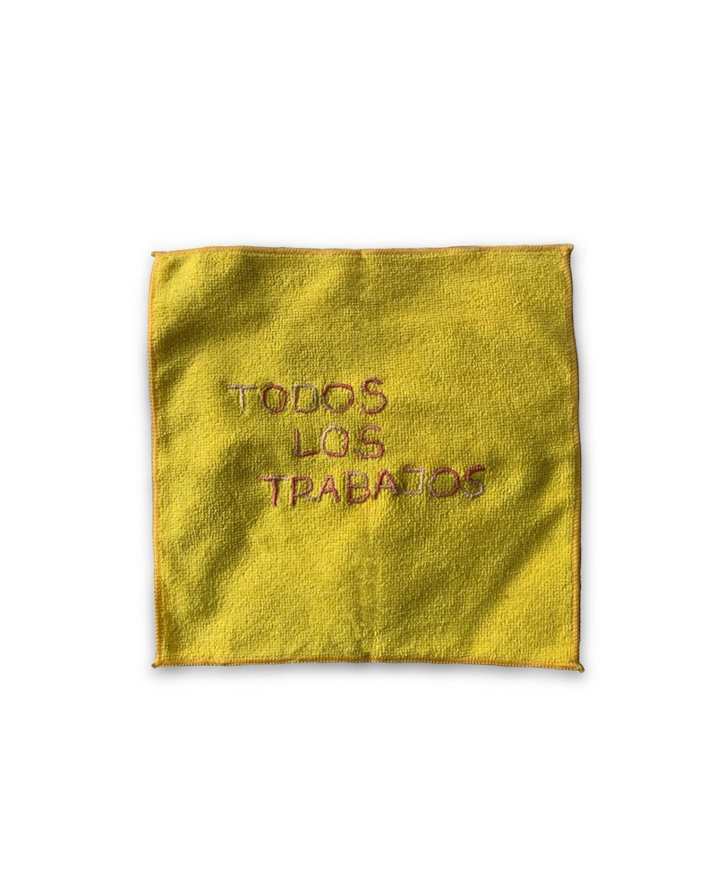 Carla Abilés: ‘Todos los trabajos,’ 2024, embroidery on cleaning cloths, 25x25cm // Courtesy of the artist