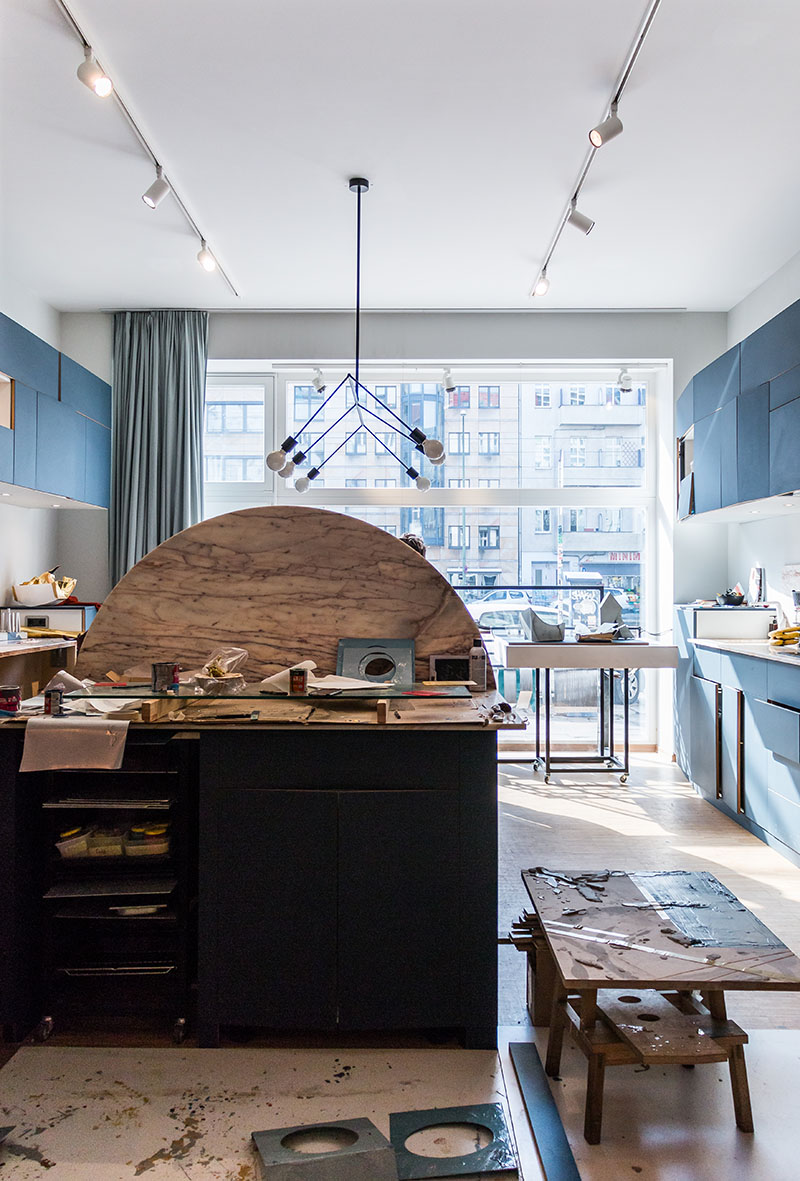 “In articles I am always referred to as Kristiane Kegelmann, the patisserie chef,” Kegelmann says. The artist may have learned her craft in the field of patisserie and worked for several years in Vienna’s KuK Hofzuckerbäckerei Demel, but it is not through just this that she wishes to be defined. With her edible sculptures, Kegelmann frees herself from the rigid and restrictive world of patisserie, redefining the boundaries between contemporary art and the culinary arts, and brings her delectable geometric food creations into the gallery space. She is at once artist, patisserie chef and sculptor, dedicated to defying expectations and delighting her guests. Such a plurality to her craft is mirrored by her studio space in Berlin’s Prenzlauer Berg neighborhood.