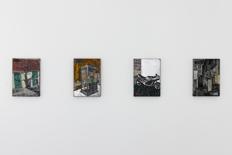 ‘Graffiti,’ 2025, exhibition view at Museion, from the left: WANTO, BOMBING LIFE: ‘The night party approaches,’ 2021-2022; ‘Phone booth,’ 2021-2022; ‘Throw away bike,’ 2021-2022; ‘Dark alleys of the big city,’ 2021-2022, Courtesy of the artist and Gallery Naruyama // Photo by Luca Guadagnini