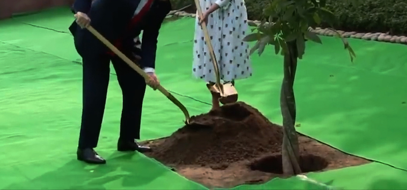 SN: Since COP26 2021, planting trees as a carbon offset has become a popular idea, despite facing significant challenges and limitations. Smolkina’s found footage video of politicians planting trees, collages multiple corporate and governmental pledges relying on large-scale tree planting. Some of the footage depicts the planting of over 350 million trees as part of Ethiopian Prime Minister Abiy Ahmed’s Green Legacy Initiative—a quite ambitious move to counter the effects of deforestation and climate crisis. There are also images of Trump and Macron planting an oak tree in the lawns of the White House, portraying tree-planting as a symbol for international politics. Once the cameras had departed, the tree was uprooted and placed into quarantine to avoid the spread of diseases and invasive insects. There it reportedly died, analogous to Macron and Trump’s political “friendship.” This seemingly anecdotal story hints to crucial concerns: what happens to all the trees after being planted? Who takes care of their maintenance? Where do they find a nurturing ground to stand on?
