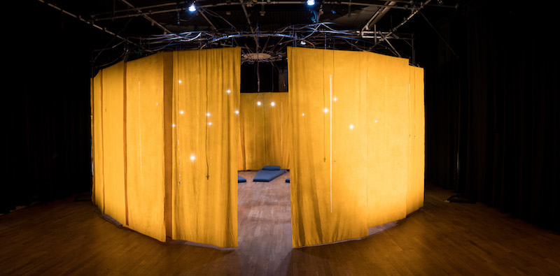 I also use it to create horizontal events that give people a different way of engaging with art. I worked with Arnolfini [arts centre] to create these long, meditative guided rests that give the audience a chance to engage with a painting in a different way. We did one that was called ‘Rest Improvised,’ and it was part of a weekend that was curated by Gaylene Gould. I worked with Jamie McCarthy, who’s a musician-composer that I work with often, and we guided people through a 50-minute rest. There were these huge, beautiful artworks by Frank Bowling, really massive pieces of colour, light, movement and texture. We had beanbags and yoga mats all over the gallery, and then people chose where they wanted to be. Often they had this quite psychedelic, in-depth experience with the artworks, because we created this structure for them to rest and be with one thing for 50 minutes. We were disrupting the predictable pace that people move around a gallery.