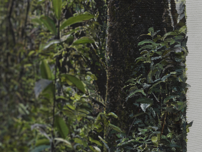 HM: I’ve asked conservation mentors how they connect people with caring about conserving land, they always say: “take people there.” I engaged in photorealism in the show here at Dittrich & Schlechtriem, and it took a long time to complete. One of these paintings took about 200-250 hours of time. In this show, the paintings are more realistic to give people a sense of “being there.” I wanted there to be many dots, in a pointillist manner, to show the diverse specks of the nature of a forest, in daylight, over time.