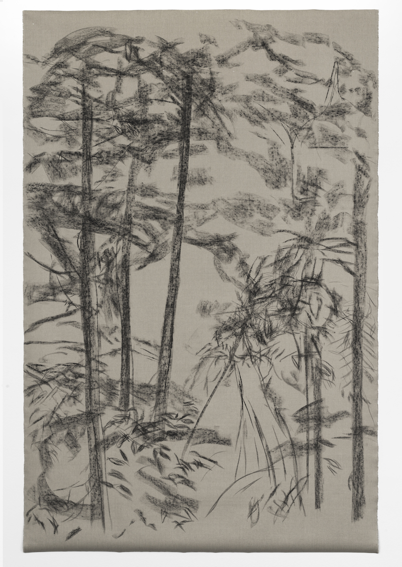 Haley Melin: ‘Biodiversity II,’ 2024, charcoal, wax and chalk on hand oil-primed linen, 330 x 215 cm // Courtesy of DITTRICH & SCHLECHTRIEM, Berlin, photo by Jens Ziehe