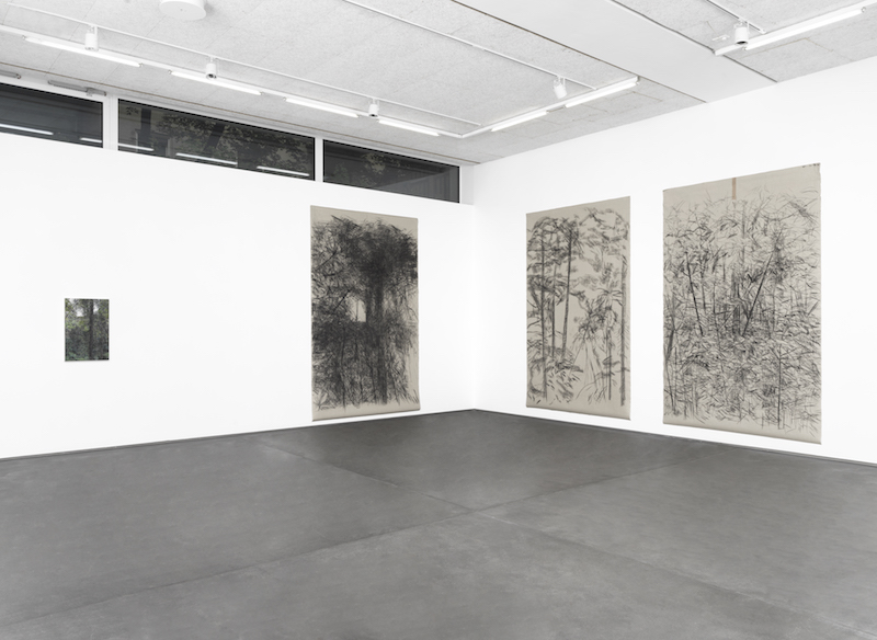 Mitte gallery Dittrich & Schlechtriem is currently showcasing works by American artist and conservationist, Haley Mellin. Mellin uses a variety of media in her works, sourcing those with non-toxic properties such gouache and charcoal and sometimes even coffee, in order to highlight her commitment to environmental justice and the conservation and sustainable evolution of diverse ecosystems. Her current exhibition, ‘Biodiversity and Betadiversity’ features a series of photorealistic paintings of arboraceous landscapes in countries such as Guatemala, as well as observational yet loose charcoal drawings reminiscent of Chinese handscrolls in their vertical structure and stylized line work. In a recently published letter to Nigerian-American writer, curator, theorist and facilitator, Enuma Okoro, Mellin writes: “Nature is somewhat of an enigma, there is so much unknown, so much mystery. Despite all our technologies and all our knowing, we still have only described (“known/recognized”) one out of eight living species, so it is thought. When one draws, one marks the passage of time.”