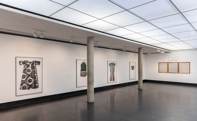 The third and last exhibition room reveals how rape culture is perpetuated in the everyday, through micro-aggressions, like sexist comments. Horrific statements by politicians and authorities printed in all caps fill the room: ”No one wants to rape anyone who is not a (fresh) virgin” (a judge in Ethiopia); “I’m not going to rape you because you’re very ugly” (Jair Bolsonaro, former president of Brazil); “If it’s inevitable, just relax and enjoy it” (Texan political candidate); “If you wouldn’t have been there that night, none of this would have happened to you.”