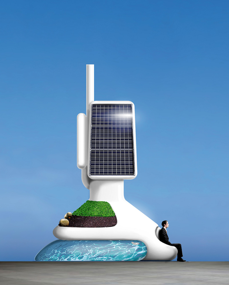 PSJM’s first attempt at envisioning a better tomorrow was with ‘Hydrogen Island’ (2010-2012), a novel and a utopian monument showing a mini energy plant with a garden and pond, where you could listen to music or get a tan from UVA rays. For the previously mentioned ‘Shapes for a Perfect World,’ they conceived works designed as if they were aesthetic objects made within an imaginary world, constructivist reliefs produced with traditional and weighty materials such as mahogany or bronze and stainless steel. In ‘CO2 emissions from 2020 to 2050’ (part of their series ‘Clean Future,’ 2021) PSJM prophesied a planet in which high CO2 emissions disappeared. This work is soon to be on view in the group show ‘Swerving the Apocalyptic Angle into Hope,’ curated by Stefano Cagol, at Glenda Cinquegrana in Milan.