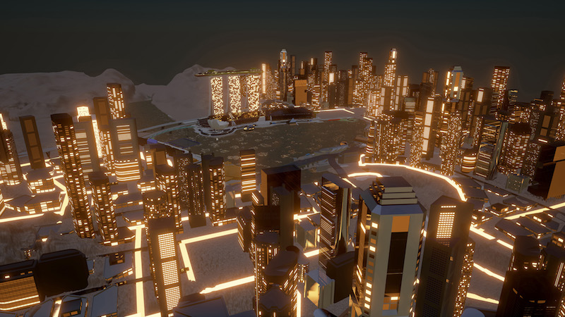 I wanted to create a similar experience through gaming and film. So, in the game ‘Sky Line’ (2014) you could journey around an elevated train line that travels between five stations, each containing artist-run and independent galleries and project spaces across London, looking down at the rest of the drowned cityscape below. In the end scene of ‘Geomancer’ (2017), the AI satellite flies to the top of the Marina Bay Sands towers in Singapore and sees the world anew. Similarly, in ‘NOX,’ which is a kind of deconstructed video game in the form of an exhibition, you as the visitor experience the fictional world of the film on the first two floors, and when you arrive on the top floor, you look down at the different zones that you inhabited just a few minutes ago. There, on the top floor, you also play the game ‘NOX,’ in which your identity shifts from being an explorer of the world to a Farsight employee, being inducted as a trainee AI psychologist. So, what I’m saying, again, is that in my work, maybe utopia is a personal experience, a kind of journey or awakening, rather than a physical space.