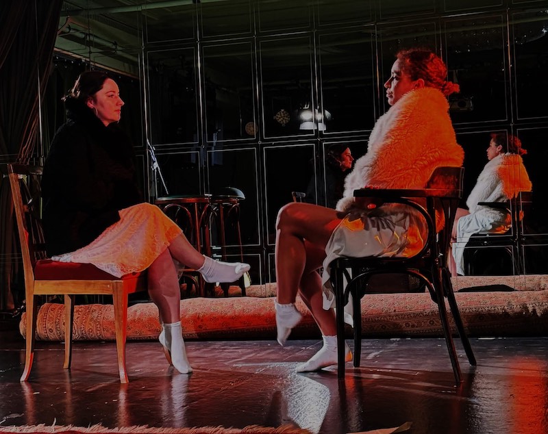 Billie Holiday (born Eleanora Fagan, 1915–1959) and Maria Tănase (1913–1963) were never friends—in fact, they never met in their lifetimes. Their meeting in the afterlife is a fictional creation, carefully written and directed by Berlin-based, Romanian theater director Iulia Grigoriu, and starring Maimouna Sow and Ioana Elena Urda. Shaped by feminism and critical race studies, Grigoriu’s perspective in ‘Billie & Maria’ emphasizes a deeply personal lens on the portrayal of their stories.