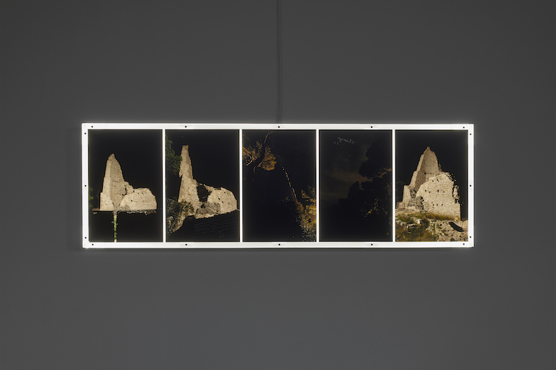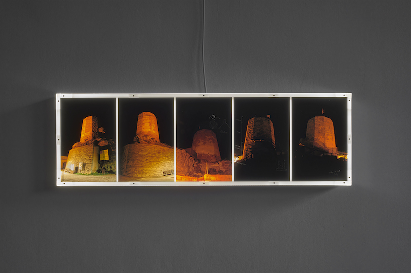 Pagès Rabal’s project also intricately charts five defensive structures strategically positioned along the historic borders of Catalonia. In the late 9th and 10th centuries, European powers established the Hispanic March—an essential buffer that delineated their territories from Al Andalus, the term used by the Arabs to refer to the Muslim realm within the Iberian Peninsula from 711 to 1492. She has photographed them at night and placed them in lightboxes on the gallery’s walls. Inscribed in the lightboxes are architectural and topographical drawings, as well as other annotations to trigger conversations. Pagès Rabal visited the towers with her father and noticed that, as tourist attractions, they feature informative displays that narrate history from a specific perspective, representing a slice of Catalan history and its journey towards nationhood. Reflecting on the various panels, she noticed that the towers were all dated based on their initial documentation by colonial powers, disregarding any of their previous histories. This erasure proved deeply problematic for her. It reminds me of an Ibo proverb the acclaimed Nigerian author, Chinua Achebe, referred to in an interview published in The Paris Review: “Until the lions have their own historians, the history of the hunt will always glorify the hunter.”