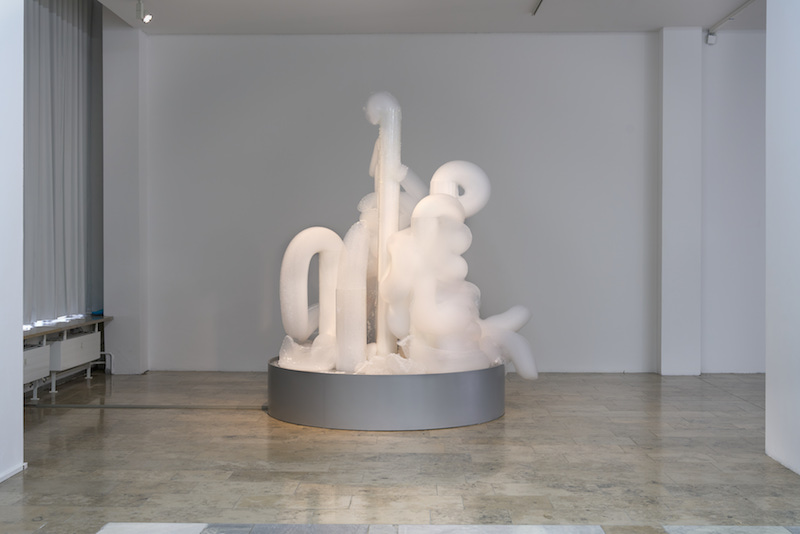 David Medalla: ‘Cloud Canyons,’ 1963/2018, sculpture, metal, acrylic glass, compressors, timers, water, soap, installation view, ‘AFTER IMAGES’ at JSF Berlin // Photo by Alwin Lay