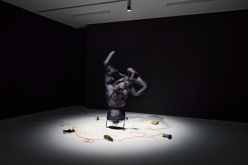 Paul Chan: ‘Too Phantasia 4,’ 2024, sculpture, fans, synthetic and natural fabrics, metal, cords, shoes, concrete, 203.2 x 304.8 x 213.4 cm, installation view, ‘AFTER IMAGES’ at JSF Berlin // Photo by Alwin Lay
