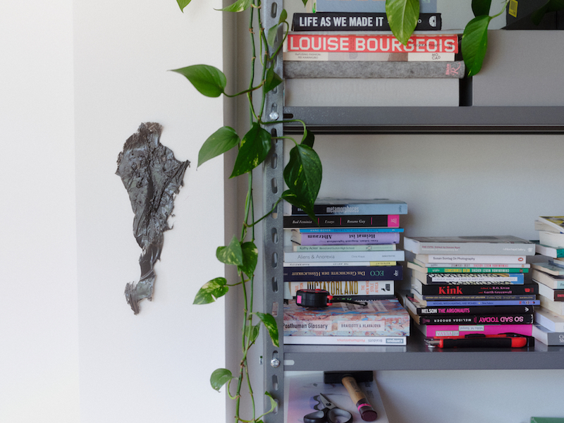 On the days that Fries isn’t here in their studio, they’re often rehearsing a performance in a space they’ve rented or are doing a residency at, such as Soft Power or their long-term collaborator, HAU Hebbel am Ufer. On the days they are here, they’re in pre- or post-production, figuring out what to do next, writing scripts and funding applications or creating moodboards and sketches. Or they might be conducting research based on the philosophical ideas of Rosi Braidotti, Donna Haraway or Legacy Russell. Everything always begins with extensive research, they tell me. Because their artistic practice is rooted in “understanding humans as posthumans,” posthuman theory always informs Fries’ speculations. Alongside VR headsets, books stacked on the shelf include ‘Posthuman Glossary’ and ‘Posthumanismus’ by Braidotti and ‘Staying with the Trouble’ by Haraway, both of which Fries cites as important influences. Although everything they do is deeply collaborative and they regularly work with Ambrus Ivanyos, a programmer who codes the VR, Fries does all of the meta-research: “I always try to learn the basics and have some understanding of how the game engines work, which is really important.” They plan to turn their latest work ‘Resurrect In Peace’ into a VR standalone experience, as they did with ‘Virtual Wombs’, and are conducting “emotional research” into interspecies grief. At the moment, they’re making sculptures for the first time, experimenting with silicon and playing around with plants: “a fun and humbling process”.