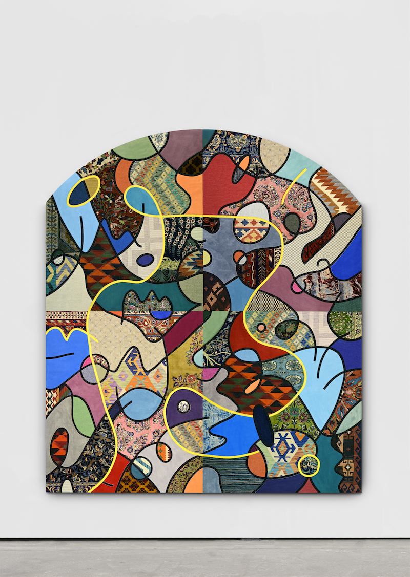 Nevin Aladag: ‘Social Fabric,’ 2023, collage with carpets of various origins and materials on wood // Photo by Daniela Kohl