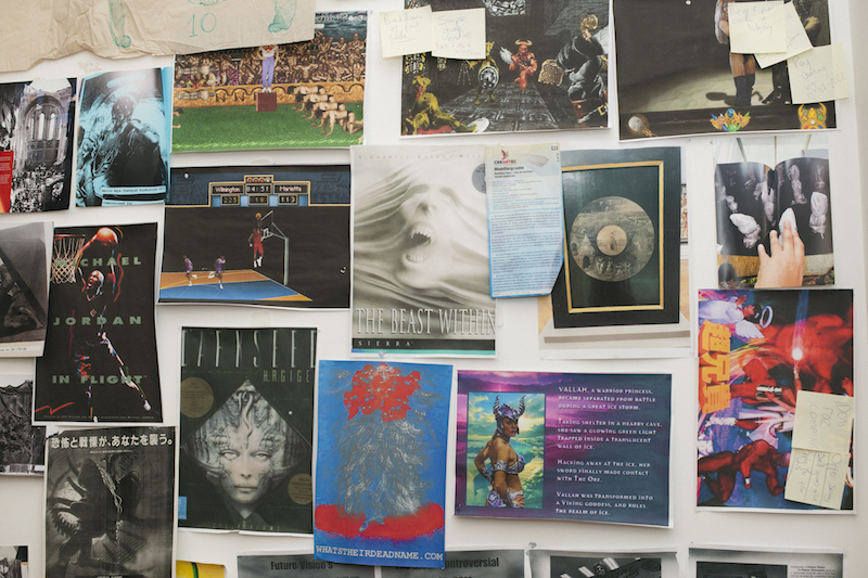 Brathwaite-Shirley’s practice encompasses film, animation, performance and video game development. A lot of her work is digital and made on screen, yet, she explains, there is a fundamentally analog and tangible component to it. “I work on the wall, I need to see everything and feel it in the room.” She starts every project with a sketch, moves on to collecting references and printing them off, compiling a sort of mood board in order to “gather a type of particular feeling of the direction the work is going in.” As someone who makes a lot of images, both online and offline, she has accumulated an extensive archive that she’s able to access anytime she needs inspiration or a visual input without resorting to external sources. “I wanna make my own book and be able to rip out images from it.”