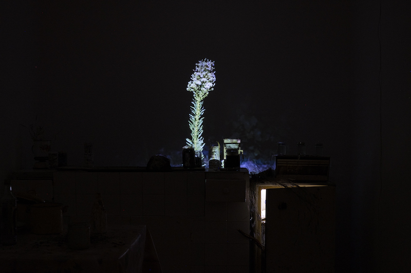 Krasimira Butseva, Julian Chehirian & Lilia Topouzova: ‘The Neighbours,’ 2023, the kitchen, multi-media installation: found objects, video projection // Photo by Lubov Cheresh, Structura Gallery, © Krasimira Butseva, Julian Chehirian & Lilia Topouzova
