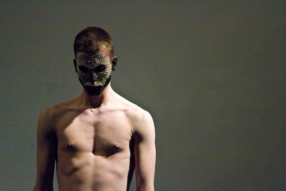 The initial idea for KEIN APPLAUS was to make a fashionable piece. We just really do what we think is fashionable in that show. Coming out of that whole danceWEB Europe thing it seemed quite necessary for us to talk about fashion. Most certainly we forgot [fashion] as our process continued but that was a strong initial idea and came out of the questions of how to be successful or how to get your work programmed, or even how to have people talk about you rather than your work. (This for example is a typical Vincent idea.) For me that starting point was just an alibi. I am not interested in fashion at all, and what does it mean anyways? Fashion or trends in the arts…I mean, thinking about that would never inspire me enough to make work out of it. I usually have to go deep into myself and look for something that really engages me personally, which is often something I cannot even call an idea or a concept. I don’t work in concepts, and I am bad in verbalizing what I’m doing. There is really not any magic there or things that need long explanation, but thank god, it’s easy for me to just do things. That’s not the problem for me and I really don’t need any justification, so that’s good about me, I can just do. To go back to me thinking [fashion] was just an alibi: I like to have alibis that initiate/trigger something, without me having to care about if the alibi material is worthy anything. But of course I know it’s important to have an alibi, because it can be an anchor, there must be something to start off from. So I work in alibis and Vincent is great at supplying me with them.