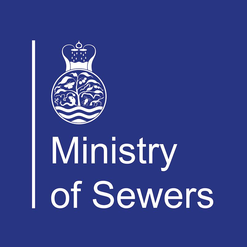 Ministry of Sewers logo on blue // Courtesy of Cooking Sections
