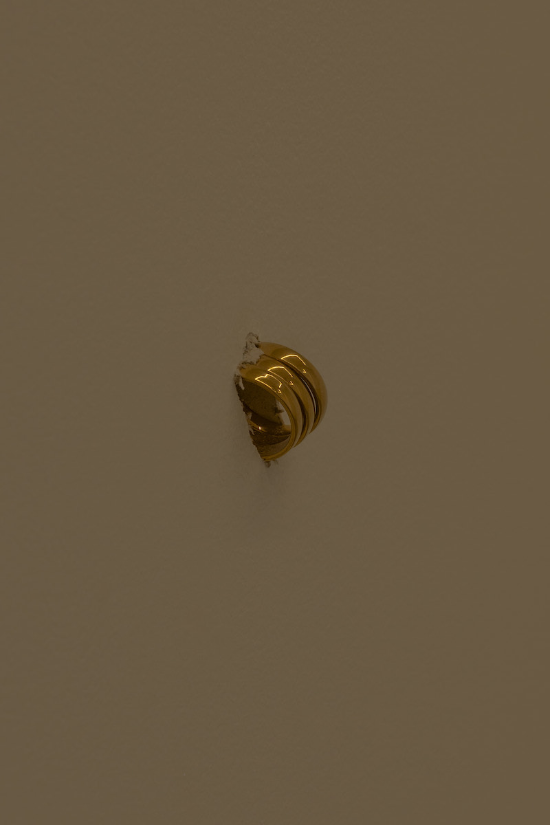 With the exception of a wooden model of a stairwell, lying on its side in the corner of the room, and a few small sketches of a similar stairwell mounted on the wall by the entrance, Basque artist nora aurrekoetxea etxebarria’s studio at first seems quite bare. That is, until the artist points out the many small interventions she has enacted on the concrete floors and windowed walls of the space. Holes and indents left by previous residents during the process of their creation are highlighted by aurrekoetxea etxebarria, as she casts minuscule sculptural objects from their negative imprint. When I visit, some of them are still inside the holes on the floor, creating a shiny metallic, dotted effect here and there, while others have been removed from the holes and placed on display on the windowsill. Focusing on relational space and the architecture of the domestic, aurrekoetxea etxebarria’s practice is fuelled by this kind of gesture. In addition, she often creates “soft sculptures” out of domestic objects, like mattresses, curtains or towels. As I leave the studio, I notice a towel folded in the shape of a swan and some bubble wrap taped together in its center and fanning outward. Objects that I didn’t initially realize were works suddenly make me want to stay: what else might I discover subtly embedded (quite literally) within these walls?