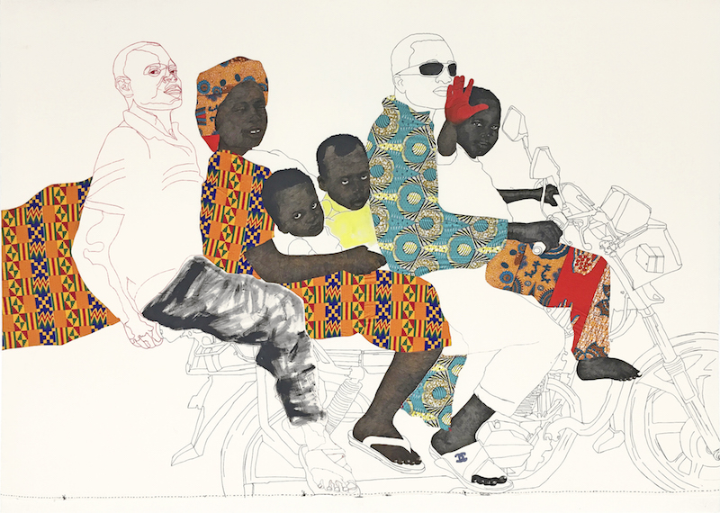 Pierre Mukeba: ‘Ride to church,’ 2018, Adelaide, fibre-tipped pen, synthetic polymer paint and applique on canvas, 320.0 x 424.0 cm // Gift of the Art Gallery of South Australia Contemporary Collectors 2019, Art Gallery of South Australia, Adelaide, © Pierre Mukeba