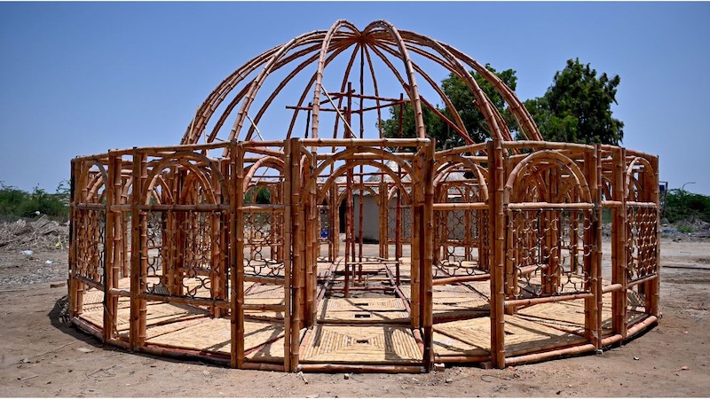 Community Centre in construction, Makli, Sindh, 2024 // Courtesy of the Heritage Foundation of Pakistan. Directed by Yasmeen Lari. © Qatar Museums, photo by Noorulain Ali