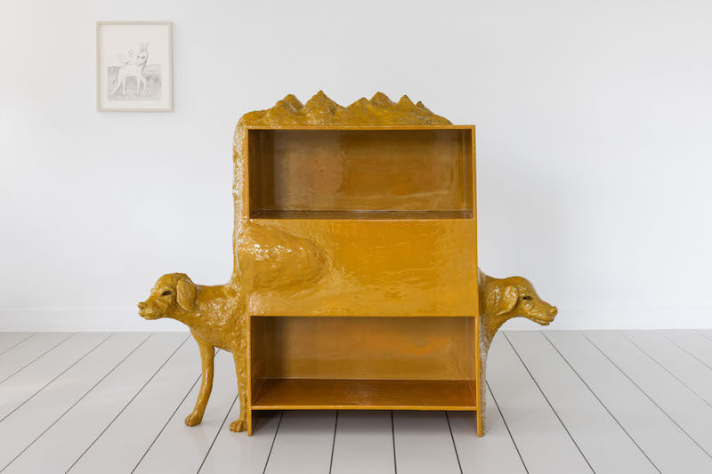 Nuri Koerfer: ‘Gestell (shelf, dogs and alps),’ 2023, wood, papier-mâché, resin, 126 x 153 x 50 cm // Courtesy of the artist and Melas Martinos