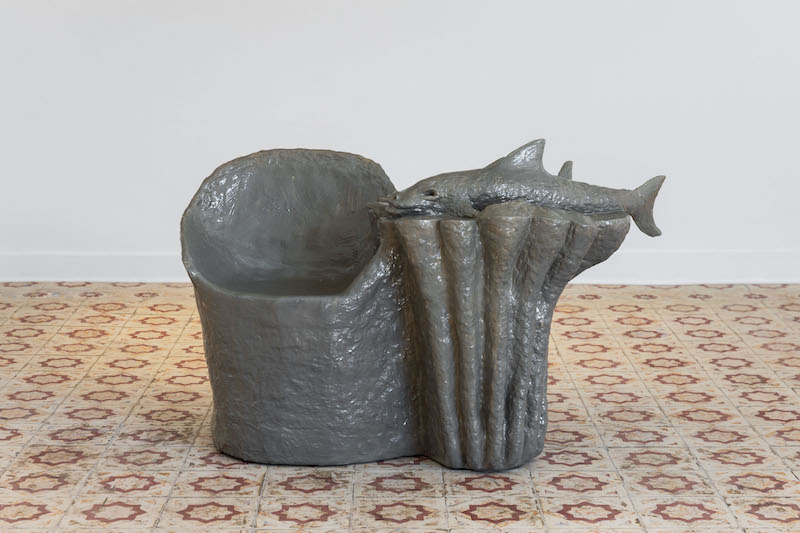 Nuri Koerfer: ‘Thron (fish),’ 2023, styrofoam, papier-mâché, resin, 76 x 126 x 65 cm // Courtesy of the artist and Melas Martinos