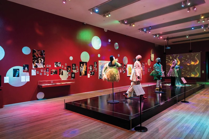 In one of the first rooms, the scene is set for me by a segment from ‘The Clothes Show,’ a BBC fashion program from 1986 that plays on an old-school monitor. Acting almost as a pre-filmed introduction to the exhibition, Bowery performs from his wardrobe in full regalia. He talks a captive public through his designs—bulbous red tulle puffball ensemble with spiky headpiece; cherubic minidress with mint-green wings; checkerboard Victorian-style gown complete with sumptuous bustle and matching monochrome make-up. “On that note, I think I better be off,” he says, before reappearing post-club with a group of friends taking the market route home. “You may well be wondering what I’m doing here,” he exclaims, vendors setting up shop around him. “One of London’s most fashionable nightclubs is just around the corner.” The footage is stark and sweet. Bowery is informative, explaining where he wears what, and why. I try to imagine it broadcast on national telly in the 80s when there were only four channels. Watching it now, inside a major institution, feels like a strange echo: Bowery being made visible as well as legible to the public again.